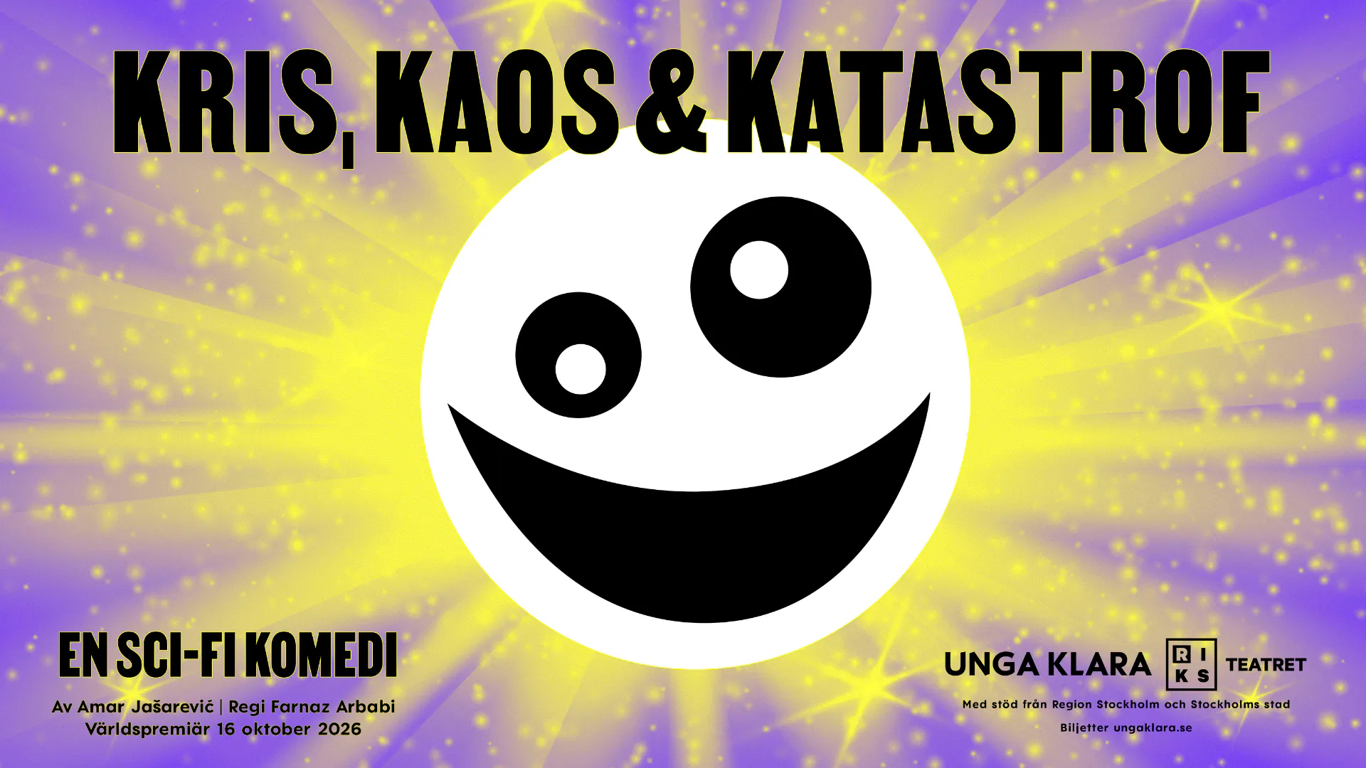 Kris, kaos & katastrof är en sci-fi komedi för alla oss som någon gång känt att världen är på väg att explodera. Skriven av dramatikerstjärnskottet Amar Jašarević, i regi av hyllade Farnaz Arbabi.